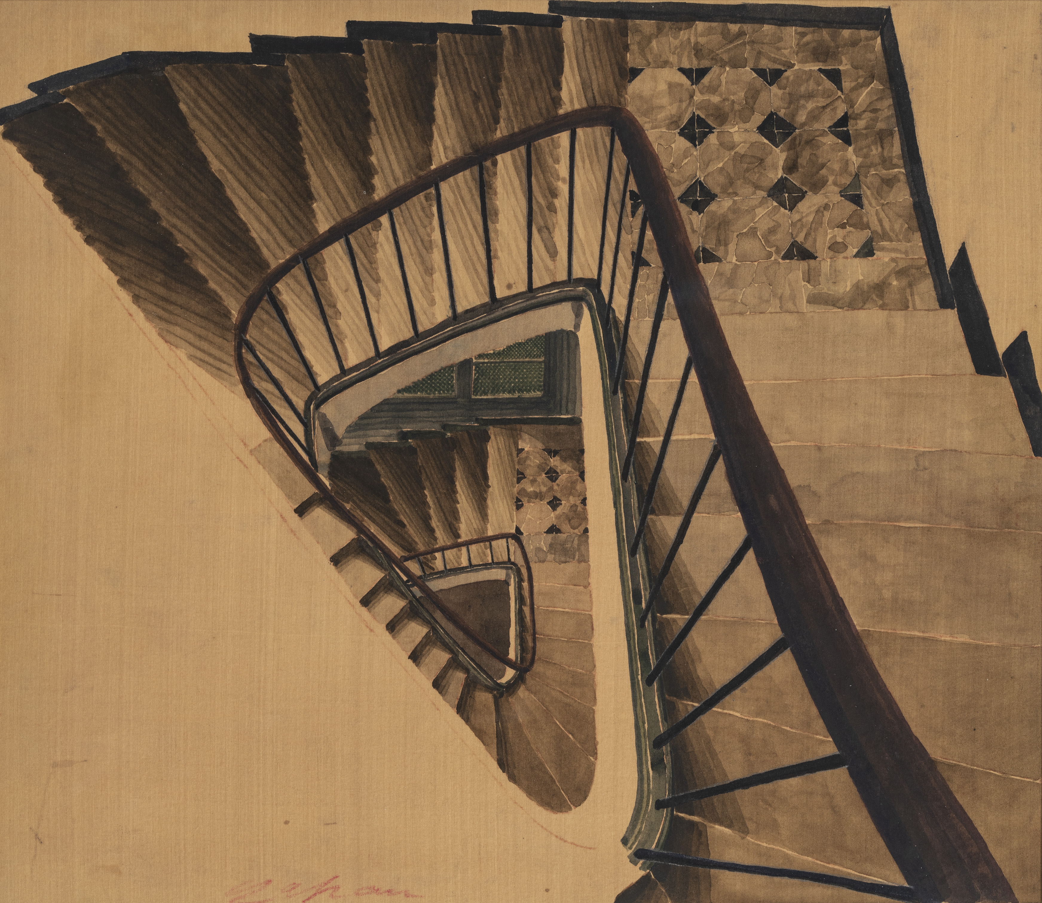Face aux majestueuses portes du Palais de l’Elysée, l’univers clos et infini de Sam Szafran reprendra vie dans l’espace de la galerie située au 86, rue du Faubourg Saint Honoré. Des escaliers tortueux se déploieront sur les murs alors que philodendrons, aralias, caoutchoucs et monsteras arboreront ses cimaises. Quelques personnages, endormis ou penseurs, se distingueront, isolés parmi les oeuvres. Puis, une vue de l’extérieur de l’atelier pour situer l’artiste solitaire dans la ville qu’il aimait tant, Paris.