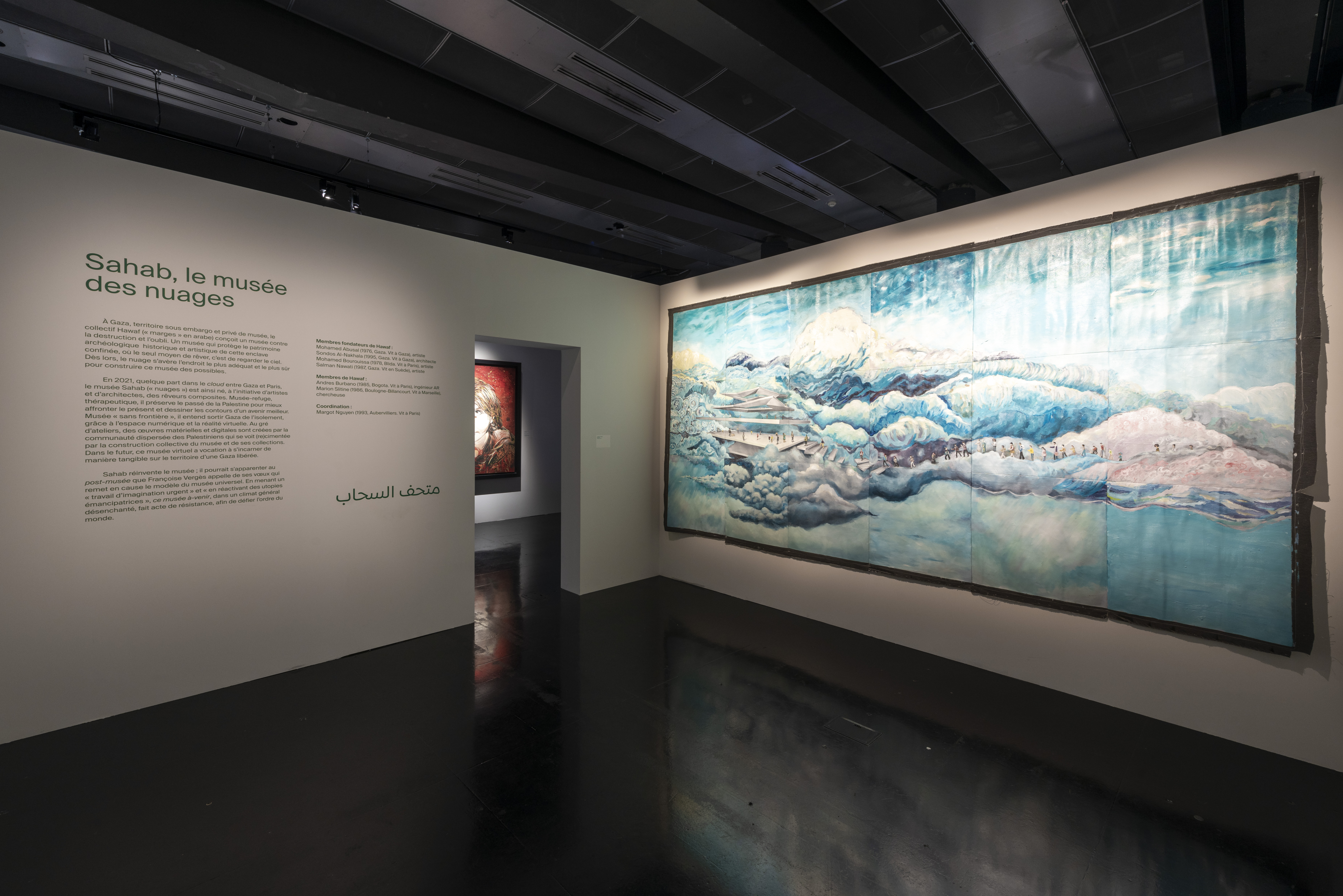 Au sein de cet accrochage, le projet Sahab (« nuage » en arabe) interroge quant à lui la façon de traiter le passé, d’agir dans le présent et d’imaginer un futur en Palestine. Ce projet est porté par le collectif Hawaf (« marges » en arabe), initié par les trois artistes visuels Mohamed Abusal à Gaza, Mohamed Bourouissa à Paris et Salman Nawati en Suède, ainsi que l’architecte Sondos EL-Nakhala à Gaza.