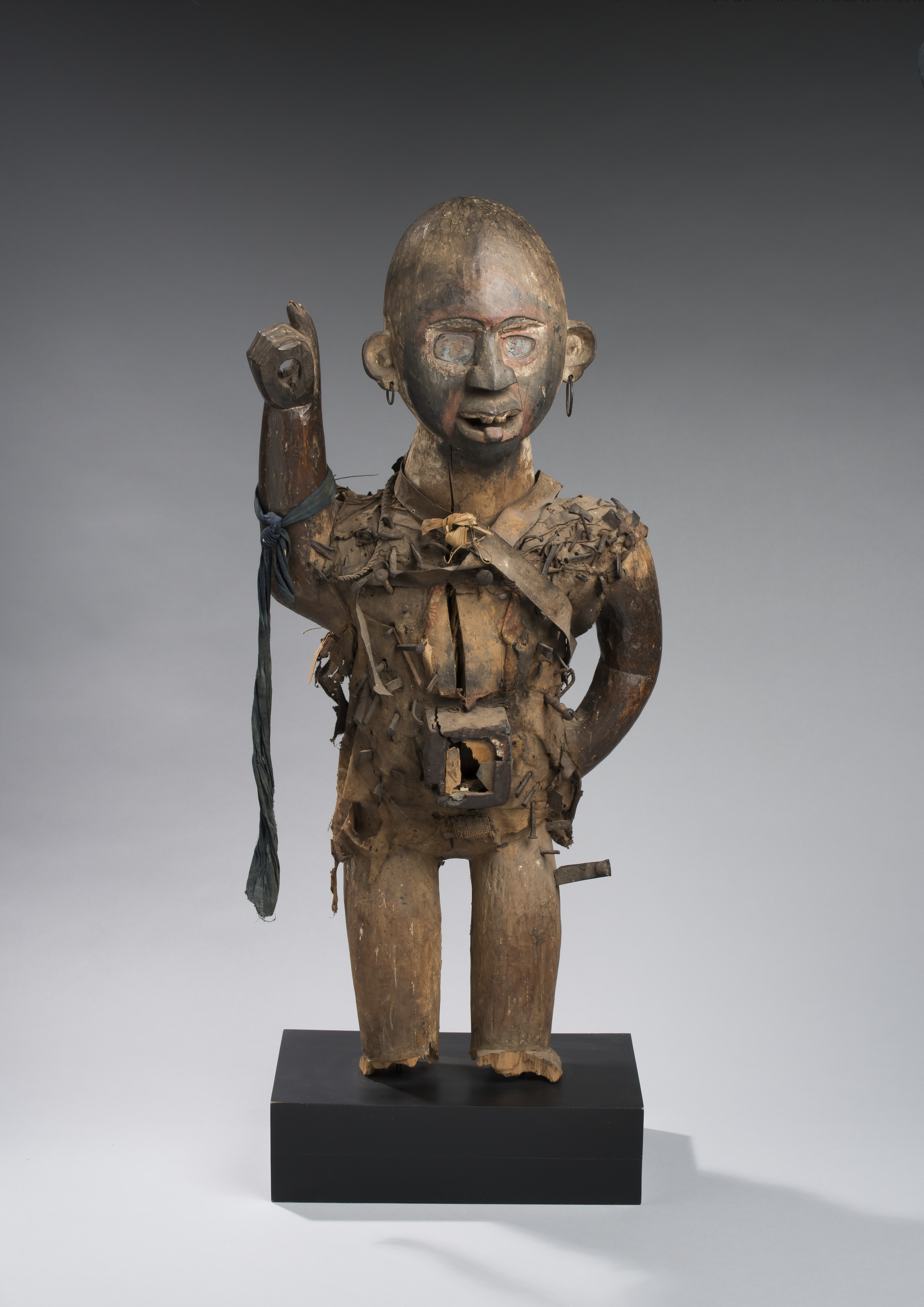 Une vingtaine de remarquables « fétiches à clous », statues anthropomorphes et zoomorphes nkisi nkonde (RDC, République du Congo et Angola), ont ainsi été choisis parmi les collections du musée et sont ici montrés pour la première fois au public. Une sélection complétée par quelques prêts particuliers pour répondre aux besoins de l’exposition.